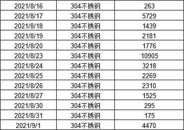 9月1日電子盤不銹鋼交收數(shù)據(jù)